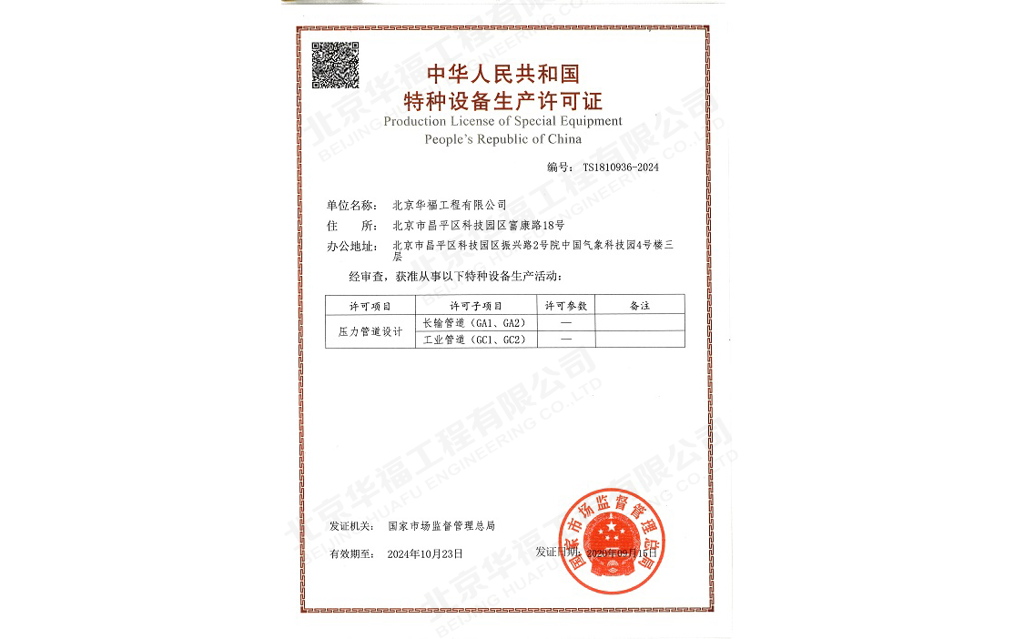 壓力管道設(shè)計(jì)資質(zhì)證書(shū)