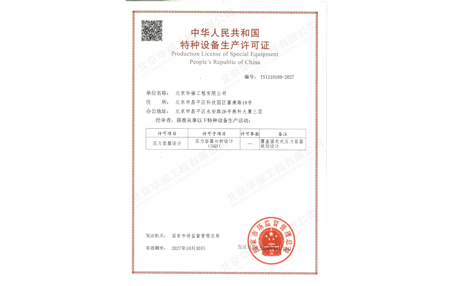 壓力容器設(shè)計(jì)資質(zhì)證書(shū)